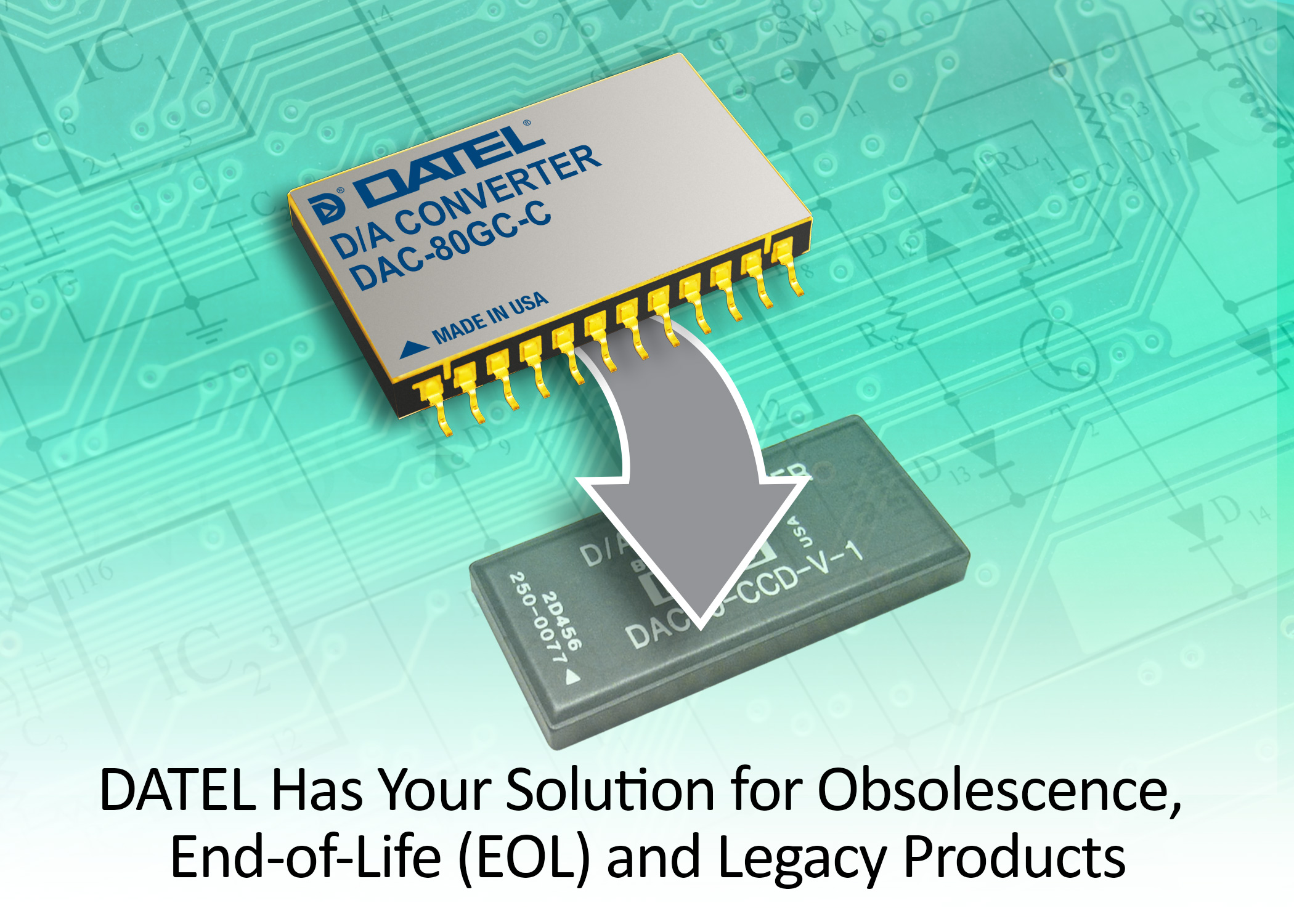 As a premier designer and manufacturer of Data Acquisition Systems and components for over 40 years, DATEL is frequently approached by our customers to help them resolve obsolescence, End-of-Life (EOL) and/or reduced access to qualified legacy products. We are uniquely positioned to provide alternative solutions to on-going and mature defense and aerospace programs which suffer from Diminishing Supplier-Base issues.